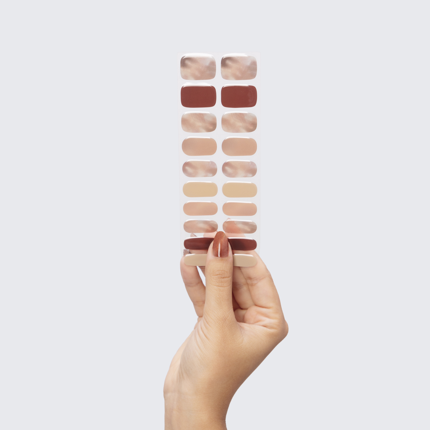 Our GLAM & GO gel nail wraps ensure that no matter how complex your chosen nail design, the application process remains incredibly simple. Our GLAM & GO gel nail wraps require no glue, base coat, or top coat—just peel them off the packaging, apply them to your nail, trim to size, cure twice, and voilà!